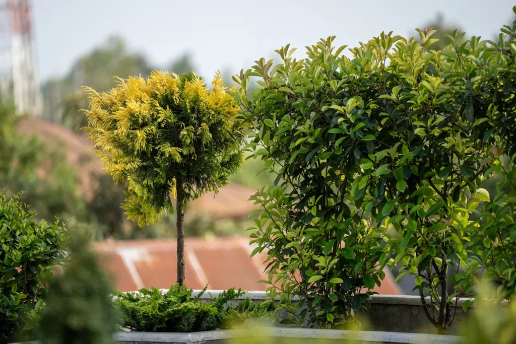 A villa rooftop transformed into a green haven, perfect for gatherings and escapes.