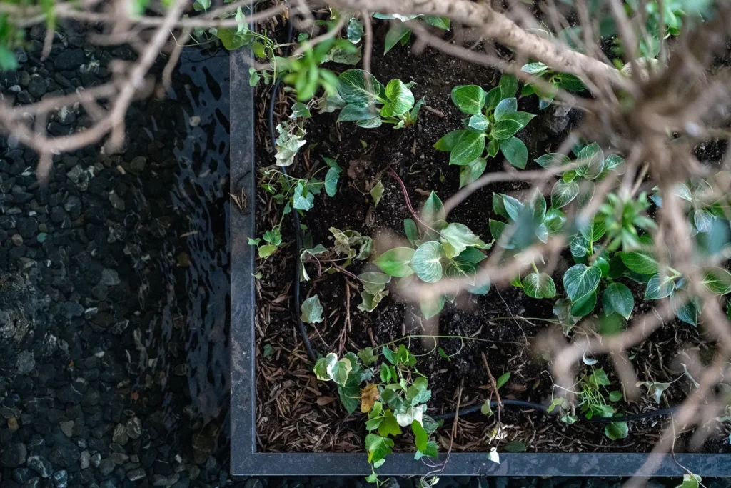 A corporate HQ landscape enriched with unique flowers and greenery.