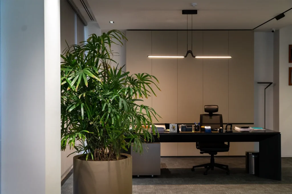 The design emphasized clean lines and uncluttered arrangements, ensuring that plants became part of the workspace identity rather than just decoration. Each element aimed to bring freshness, improve air quality, and boost employee well-being, reflecting the client’s commitment to innovation and excellence.